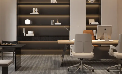 软装在办公室设计中占有重要的地位。有的软装天生自带光环,一用就熠熠生辉,很难不成为空间里的焦点。如沙发,选对适合办公室风格的沙发,绝对能上升办公室气质,彰显高贵气感的沙发一下子就能给人留下深刻印象。或者使用较为活力颜色的家具进行跳跃,质感也随之提升。又或是选择木质家具,朴实无华的温馨色调在办公空间里铺展开,低调而精致,高级感十足。